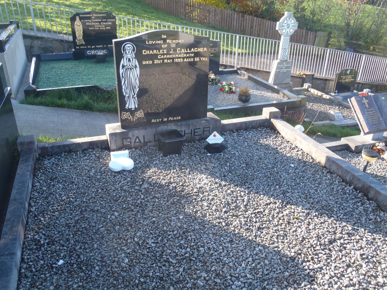 Charles J. Gallagher from Carrickmagrath died May 1999 aged 66