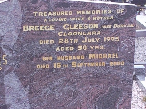 Breege Gleeson from Cloonlara died July 1995 aged 50