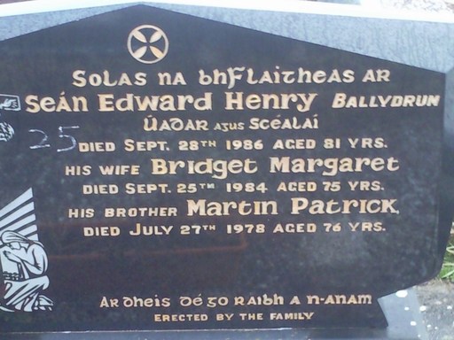 Sean E. Henry from Ballydrum died September 1986 aged 81