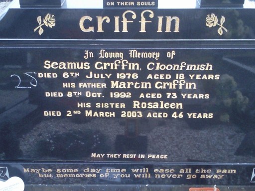 Seamus Griffin from Cloonfinish died July 1976 aged 18