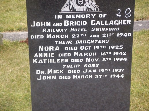 Mick Dr. Gallagher from Railway Hotel died January 1937