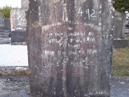 Patrick O'Malley from Kilbride died March 1962