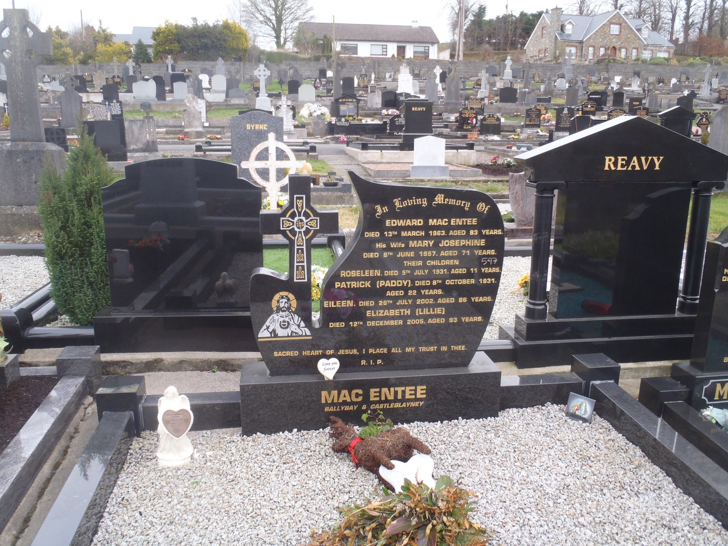Mary J. MacEntee from Ballybay died June 1957 aged 71
