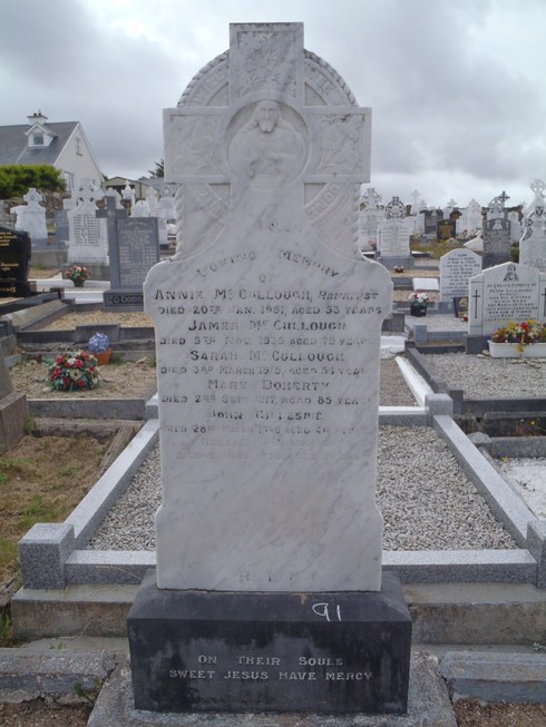 Sarah McCullough from Ranafast died March 1915 aged 54